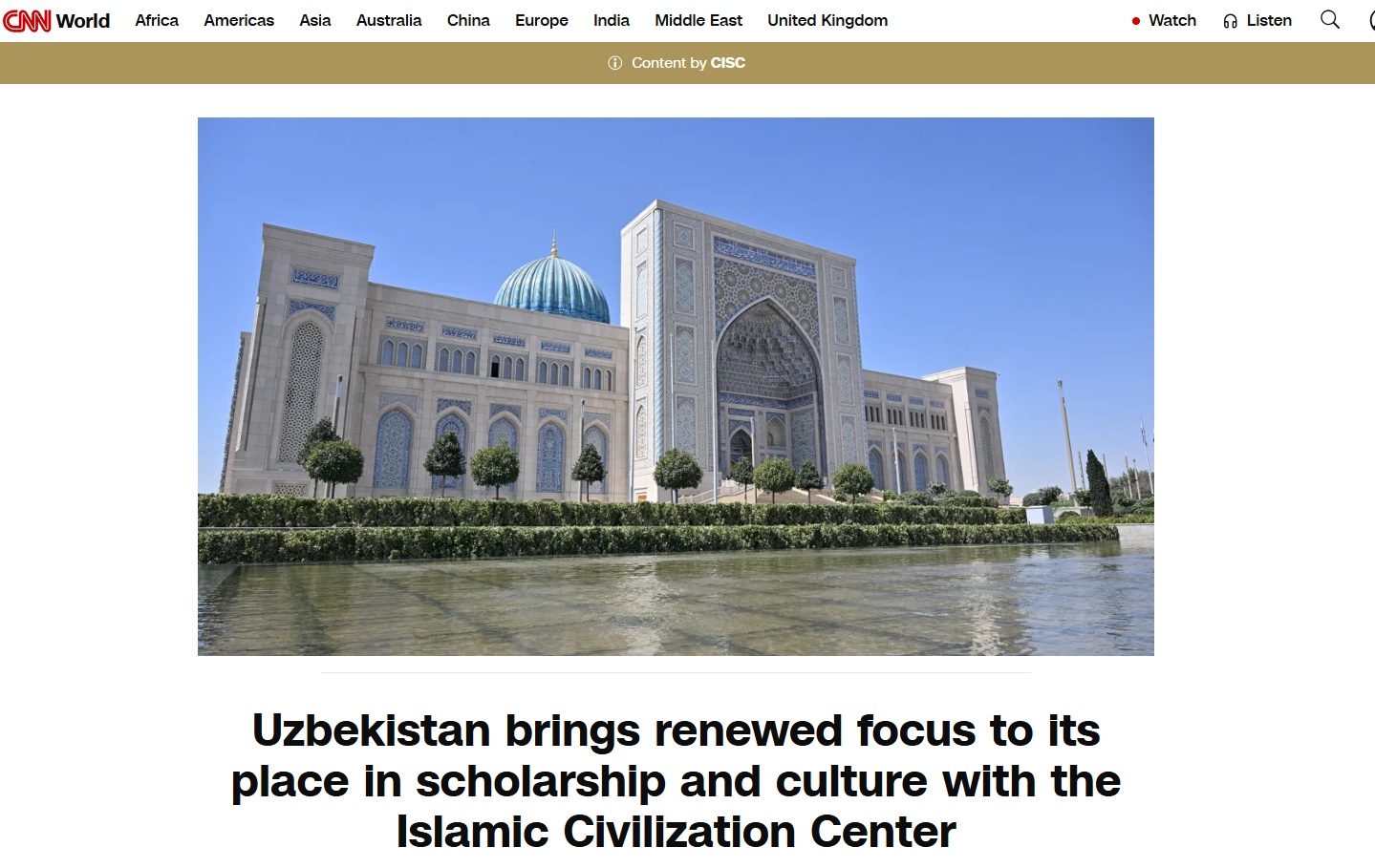 CNN World O‘zbekiston Islom sivilizatsiyasi markaziga bag‘ishlab maqola e'lon qildi