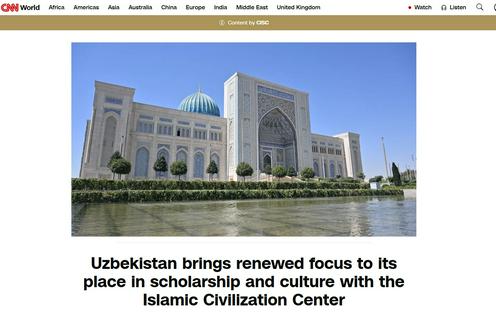 CNN World saytida O‘zbekiston Islom sivilizatsiyasi markaziga bag‘ishlangan maqola chop etildi. Bu haqda ITSM matbuot xizmati xabar berdi.